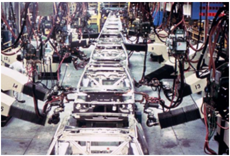 산업용 로봇은 자동차 산업을 중심으로 가속화 되었다. 1969년 GM은 로즈타운 공장(Lordstown Assembly Plant)에 첫 스폿용접(Spot Welding) 로봇을 설치하였다. 기존에 20~40%에 불과하던 차체 용접 공정 자동화율을 90%이상까지 올려 놓을 수 있었다.